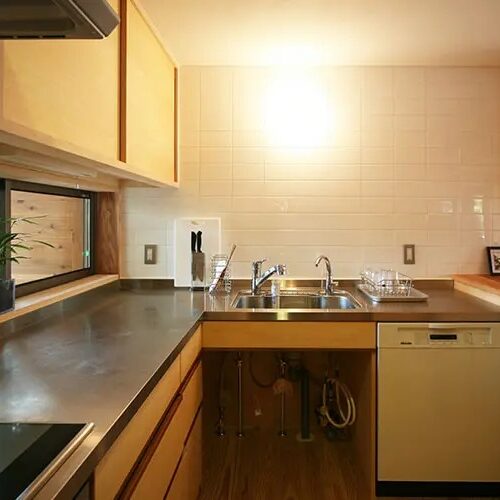 ◎コの字型で使い勝手の良いオリジナルキッチン。ダイニング側にカウンターがあることで、手元が隠れ急な来客にも慌てず対応できます。