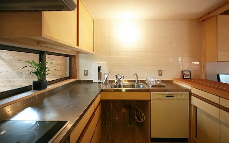 ◎コの字型で使い勝手の良いオリジナルキッチン。ダイニング側にカウンターがあることで、手元が隠れ急な来客にも慌てず対応できます。