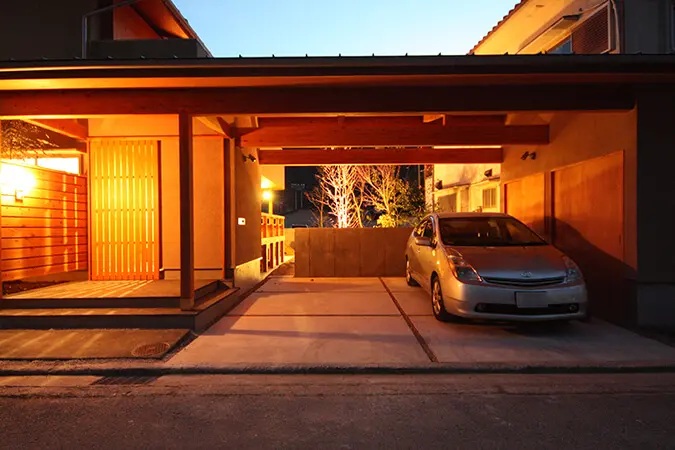 ◎屋根付きガレージで、雨の日も濡れずに車の荷物の積み下ろし、家への出入りができます。