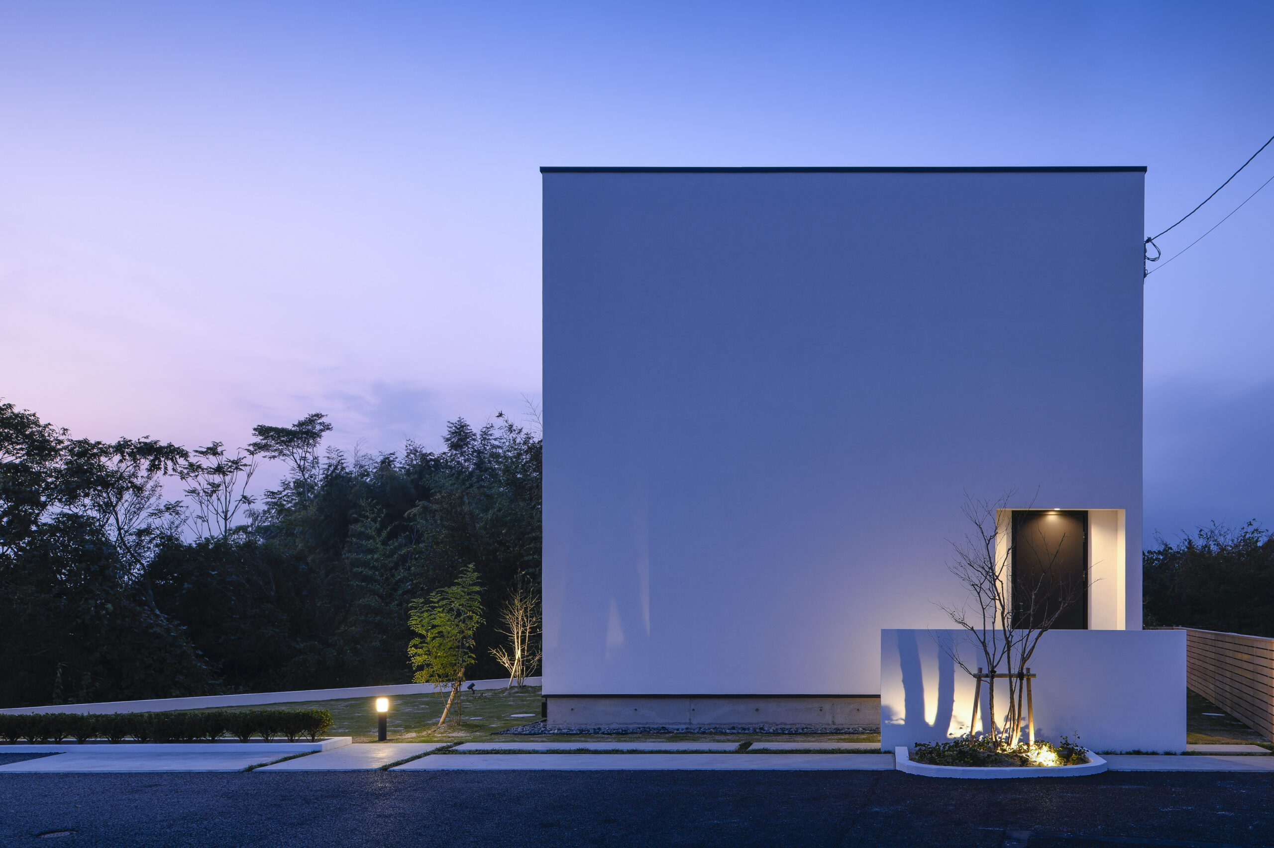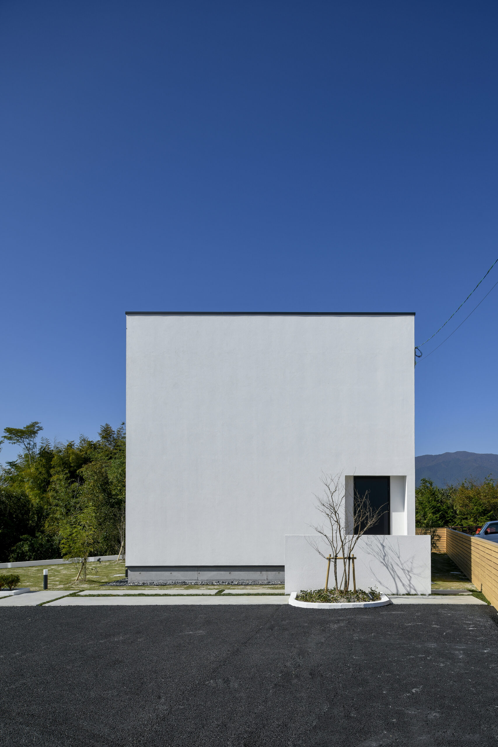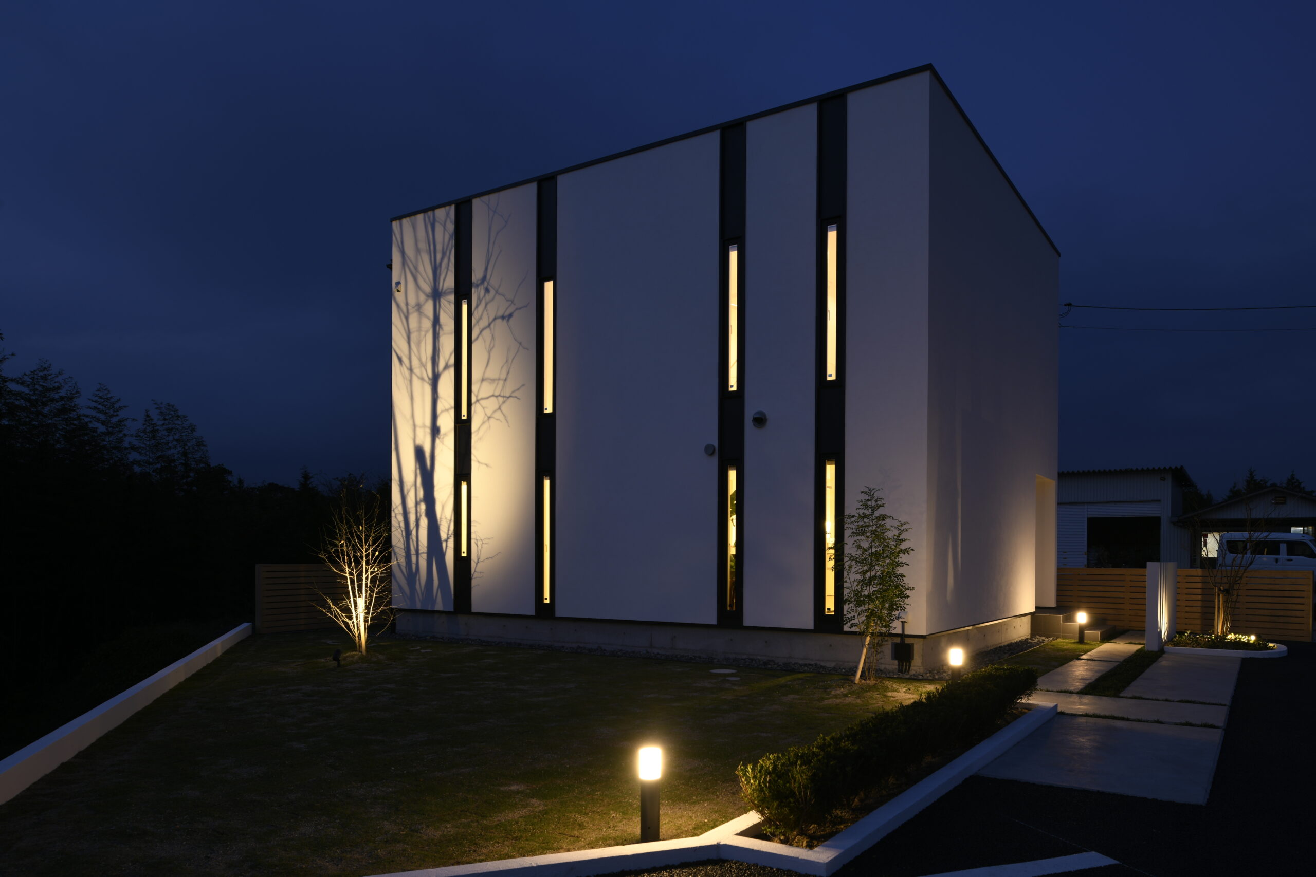 規格住宅product casaのアイコン的存在として支持されている〈 casa cube 〉の常設展示場。どんな場所に建っていても、その佇まいは凛として、シンプルで美しい四角い家。ファサードには窓がなく、建物側面にあるスリット窓が特徴的。その細い窓からは周囲の視線をシャットアウトしながら、自然の景色や風を心地よく取り入れます。