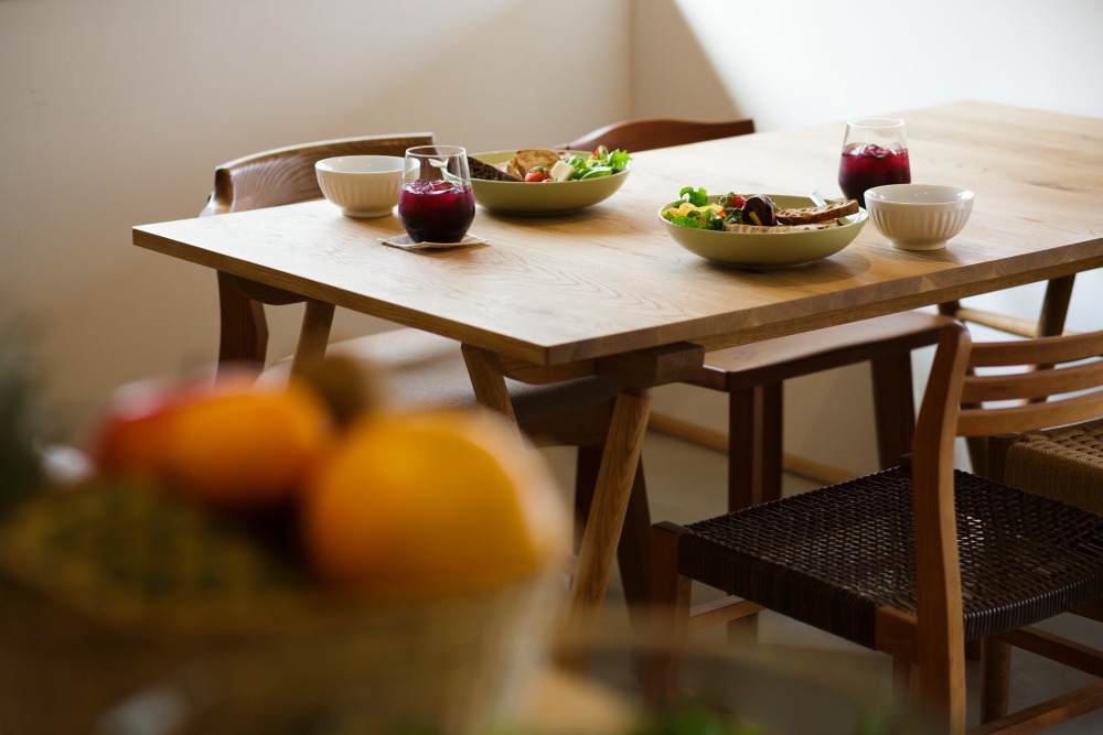 オリジナルのキッチン・作業台やオリジナルのソファ、ダイニングテーブルを実際に体感することができる空間です。