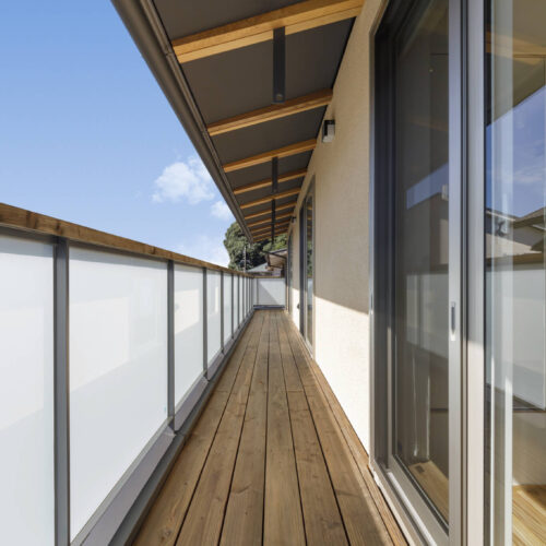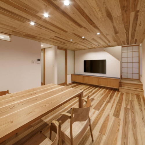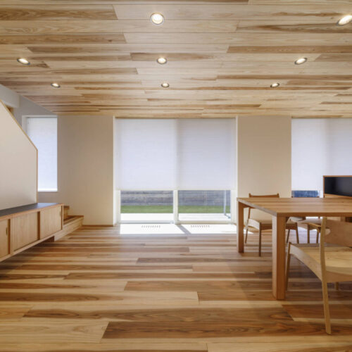 性能としては耐震等級3(許容応力度計算による)、断熱等級6(UA値=0.37W/㎡・K C値=0.5c㎡/㎡)となっています。また、床下エアコン、小屋裏エアコンを搭載し、第1種換気(全熱交換)による換気設備を設置しております。