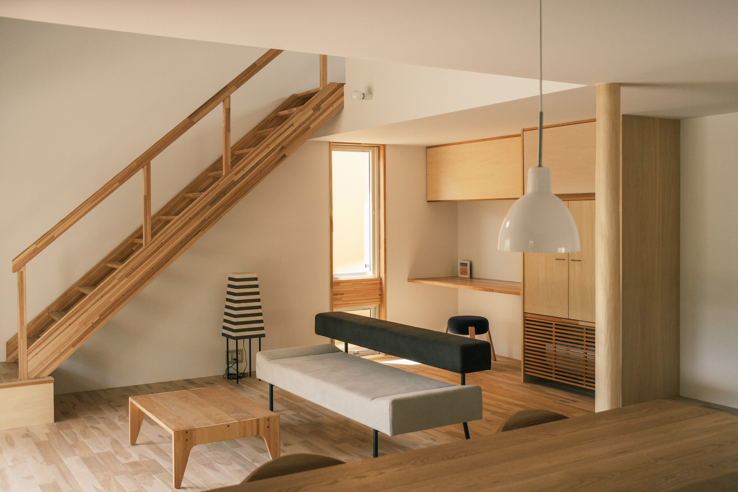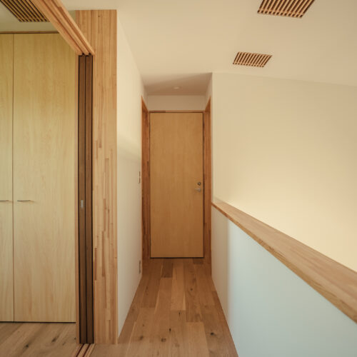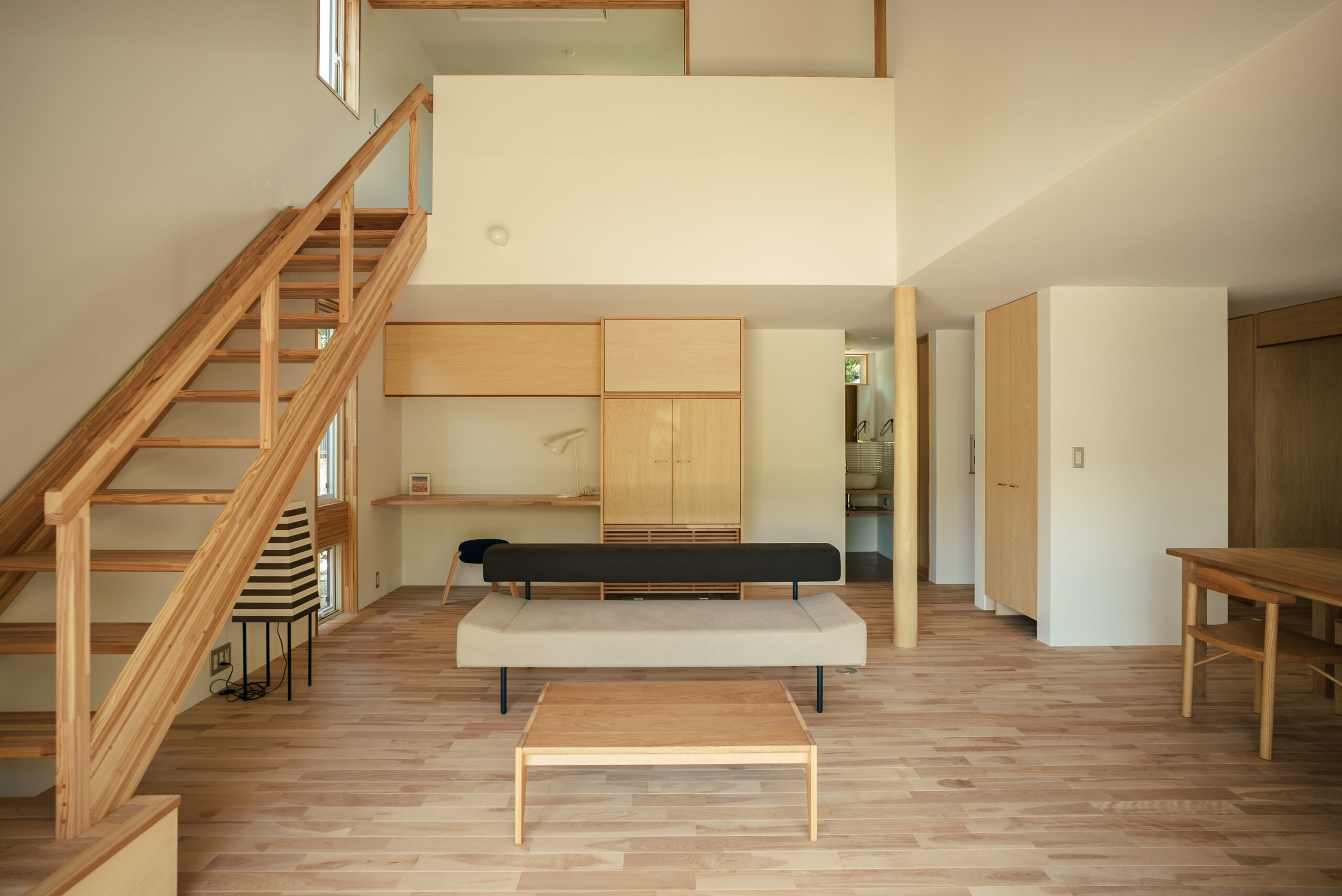 「i-works1.0 甲府」は、ベースプランに洗面台と脱衣室の分離や造作家具の配置など、暮らし方に合わせたカスタマイズを加えました。自社大工による造作家具が空間に統一感をもたらし、機能性と美しさを両立しています。